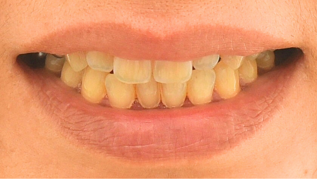 元々は虫歯治療でご相談に来られましたが、その際に歯を白くすることもご希望されて行うことになりました。標準的なコース期間では、海外の方特有のエナメル質の厚さにより、薬液の浸透が困難でした。しかし、患者様の努力もあり、最終的にゴールを達成することができました。